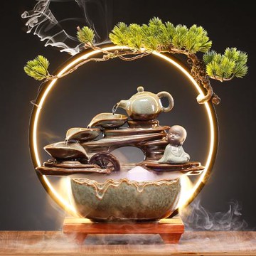 禪意招財流水擺件循環水客廳茶室創意茶壺裝飾品開業喬遷新居禮品