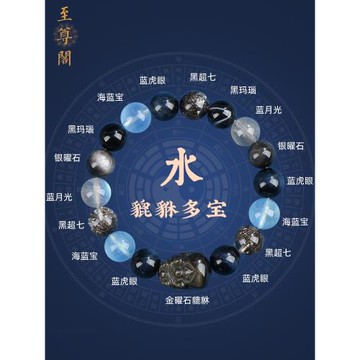 五行屬水天然水晶貔貅手鏈藍水晶缺水補水喜用水黑曜石海藍寶手串
