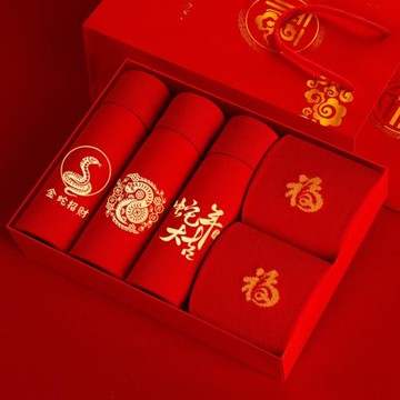 馬年本命年禮物男士內褲大紅色男生純棉四角短褲頭底褲衩結婚平角