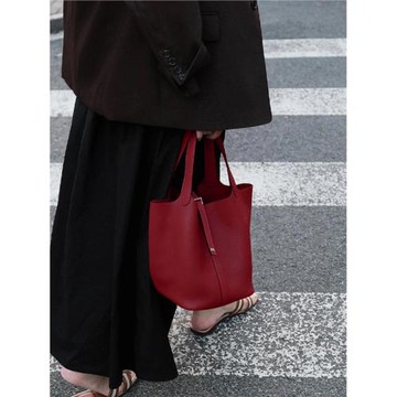 點我下載(免運)今年流行手提紅色新娘結婚包包女2025新款高級感通勤菜籃子水桶包