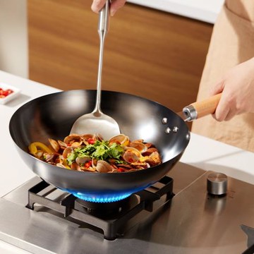 章丘炒菜鍋傳統鐵鍋旗艦炒鍋不粘鍋家用無涂層電磁爐專用平底已開