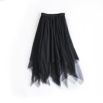 [巴黎精品] 半身裙長裙-高腰不規則網紗A字女裙子3色a1fq108