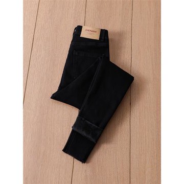 黑色牛仔褲女加絨加厚2025冬季新款高腰顯瘦緊身小腳褲子保暖外穿