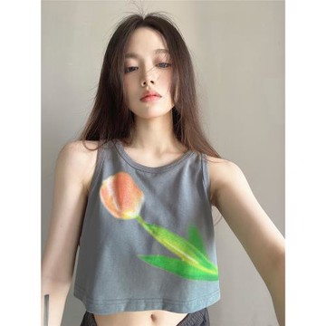 MEDOITN原創設計郁金香露臍背心T恤純棉休閑辣妹夏季短款無袖上衣