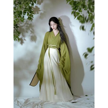 綠色漢服女改良魏晉制古裝中國風交領齊腰大袖襦古風舞蹈演出秋季
