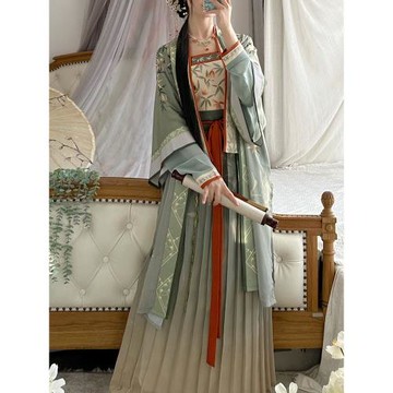 漢庭記原創[竹葉青]長干寺褙子飛機袖百褶裙日常顯瘦宋制漢服女