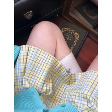 花海賦黃色校供感jk格裙正版原創學院風裙高腰顯瘦a字百褶半身裙