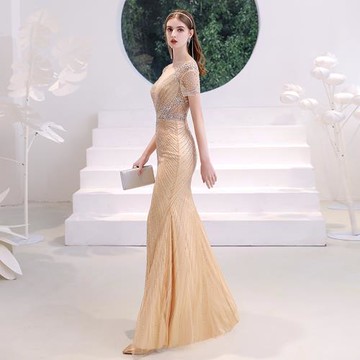 點我下載高端香檳金色晚禮服裙女2025新款宴會氣質魚尾輕奢小眾年會主持人