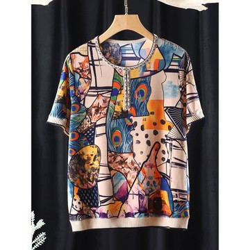 純棉美式印花寬鬆短袖上衣