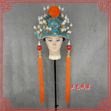 正藝戲裝戲曲戲劇王帽京劇草王盔皇帝帽豫劇九龍冠小王盔帽穗配飾