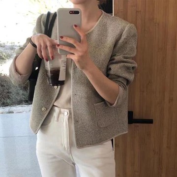2025年春秋新款韓版休閑短外套女小香風羊毛簡約氣質通勤系扣外套