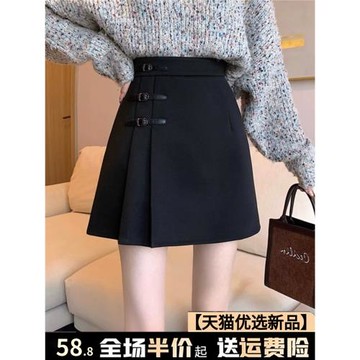 黑色西裝裙褲女夏季2025不規則a字高腰寬松顯瘦百搭闊腿褲裙短褲