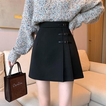 【高磅數A字裙】DOMISS附皮帶-秋冬高腰必收款 短裙 裙子女生-2色(現貨)