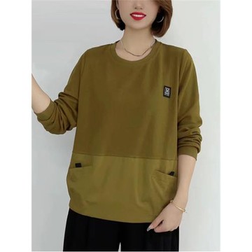 洋氣時尚休閑春秋款拼接衛衣中年女士媽媽裝韓版上衣長袖T恤小衫