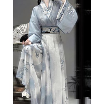 花槿軒原創【云中鶴】晉制漢服女中國風交領破裙秋季國風俠風套裝