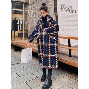 復古格子毛呢外套女中長款2025冬季新款韓版寬松加厚過膝呢子大衣