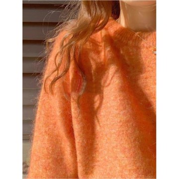 橘色圓領羊毛打底衫女秋冬季浣熊絨毛衣慵懶高級感內搭針織衫上衣