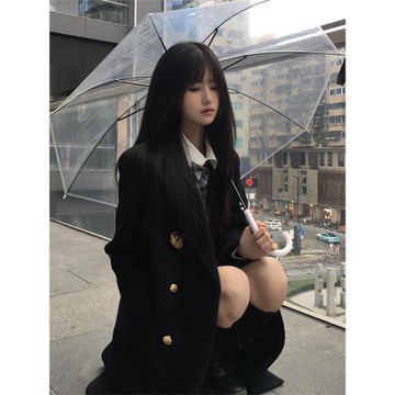 日系原創校供感圣研高西裝JK制服女學院風三粒扣紺色西服外套秋冬