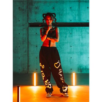 BOUNCING ACE美少女舞士原創涂鴉花朵印花加肥街舞衛褲寬松運動褲