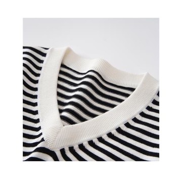 點我下載重工條紋縫合 48S100%棉 V領毛衣女士打底衫薄款套頭針織衫不起球
