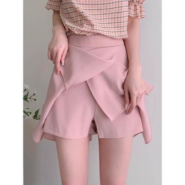 粉色花苞短裙女夏季高腰a字蓬蓬裙小個子南瓜褲防走光冰絲半身裙