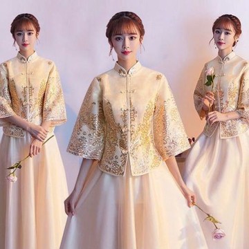 晚禮服女中式旗袍伴娘服主持人迎賓頒獎禮儀小姐中國風回娘家出服