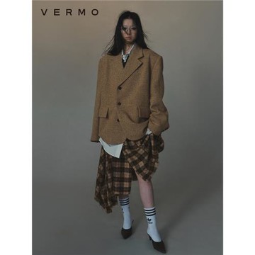 VERMO 粗紡綿羊毛 復古又現代 方形寬松廓形裁剪毛呢西裝外套