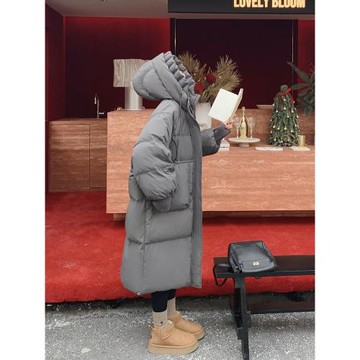 灰色長款羽絨服女冬季2025新款高級感超好看白鴨絨過膝面包服外套