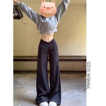 闊腿西裝褲女2026新款春秋高腰直筒高級感垂感小個子拖地休閑長褲