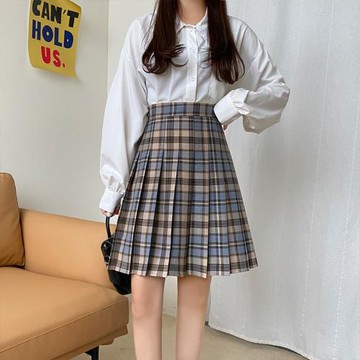 配毛衣衛衣百褶裙女春秋胖MM短款大碼高腰百搭A字中長格子半身裙