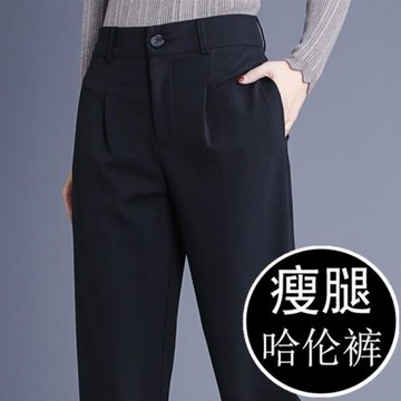 春秋冬季加絨哈倫長褲女大碼胖mm寬松職業西裝褲高腰蘿卜九分褲子