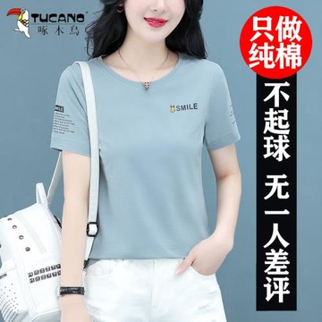 啄木鳥女士t恤女純棉短袖2026年夏季新款 中年女裝夏裝媽媽上衣丅