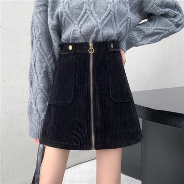 咖色燈芯絨半身裙a字裙秋冬女大碼顯瘦包臀裙口袋胖mm遮胯a型短裙