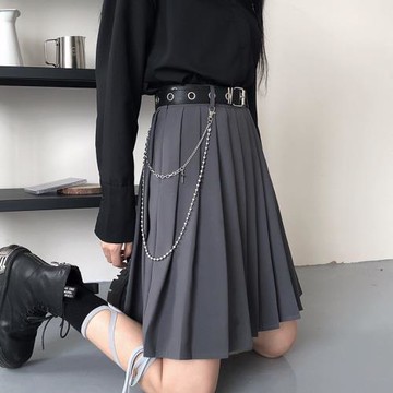 大碼jk百褶裙性冷淡高級灰工裝半身裙設計感女小眾a字胖mm中長裙