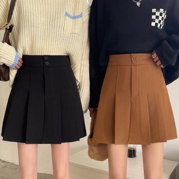 DB家2022秋新款學院貝殼裝飾復古高腰顯瘦寬百褶A版短裙半身裙