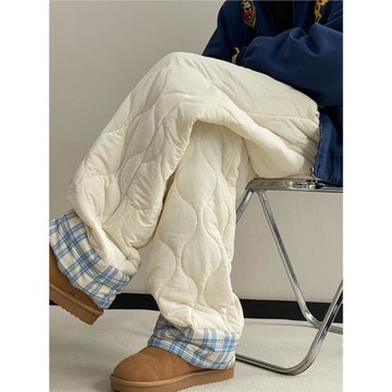 超厚菱格羽絨棉褲女冬季外穿防寒羊羔毛褲子小個子窄版直筒休閑褲