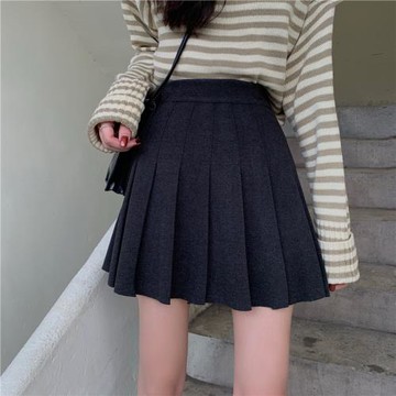 tb百褶短裙秋大碼防走光a字網球裙高腰百搭學院風西裝灰色半身裙