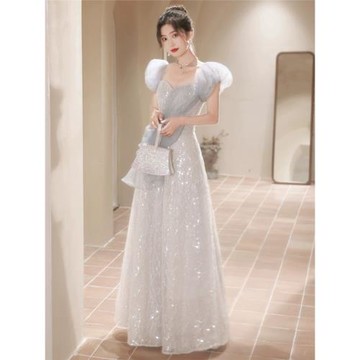藍色晚禮服裙宴會法式輕奢小眾氣質高端高級感公主藝考主持成人女