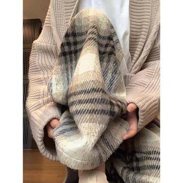 毛呢格子褲女春秋季復古高個子慵懶風寬松拖地褲直筒加絨闊腿褲子