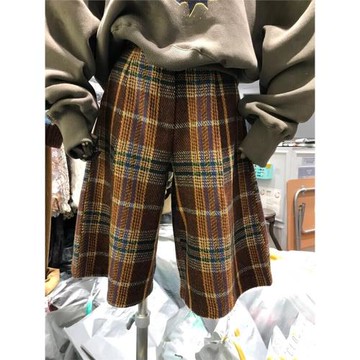 點我下載韓國東大門2025春季新款高腰格子垂感闊腿褲女直筒休閑短褲外穿潮