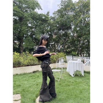 CrushOnit 新款低腰洗水迷彩喇叭褲女顯瘦長褲美式復古工裝休閑褲