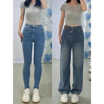 【太妮絲MO01】現貨 超直腿 牛仔寬褲 牛仔長褲 丹寧褲 高腰褲 假口袋 牛仔褲 美式 直筒 牛仔褲 錐形褲 高腰