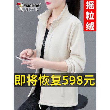 啄木鳥奧粒絨外套女秋冬加絨加厚2025新款媽媽裝搖粒絨立領上衣