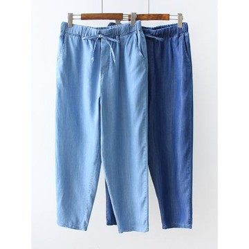 2025夏裝新款天絲牛仔褲女大碼女裝松緊高腰冰絲休閑褲媽媽褲子薄