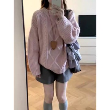 溫柔慵懶套頭針織衫上衣厚秋冬浣熊絨軟糯韓系麻花毛衣女寬松外穿