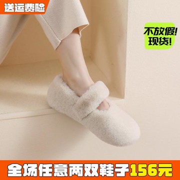 棉瓢鞋女秋冬百搭羊羔毛豆豆鞋厚底加絨外穿毛毛鞋大碼女鞋41一43