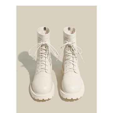 馬丁靴女2025年秋冬新款英倫厚底機車騎士短靴單靴白色系帶靴子女