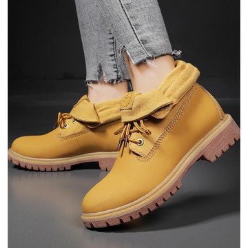 冬季情侶大黃靴真皮復古馬丁靴男加絨短靴女百搭沙漠靴高幫工裝靴