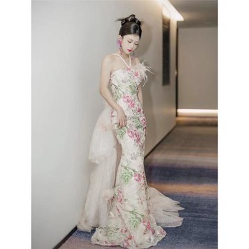 高定高級質感奢華晚禮服女性感宴會主持人魚尾氣質名媛連衣裙長款