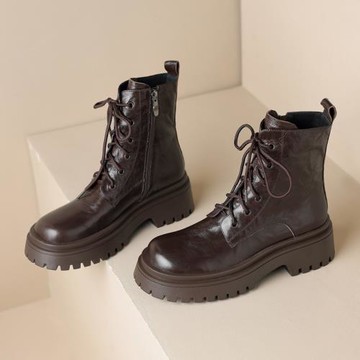 2025新款真皮女靴冬季百搭款帆布鞋短靴英倫風休閑馬丁靴真皮女鞋